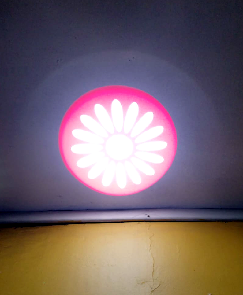 * Verifique que con el canal 3 al máximo y el canal 8 en el valor 22, muestre el Gobo de la cuarta foto.