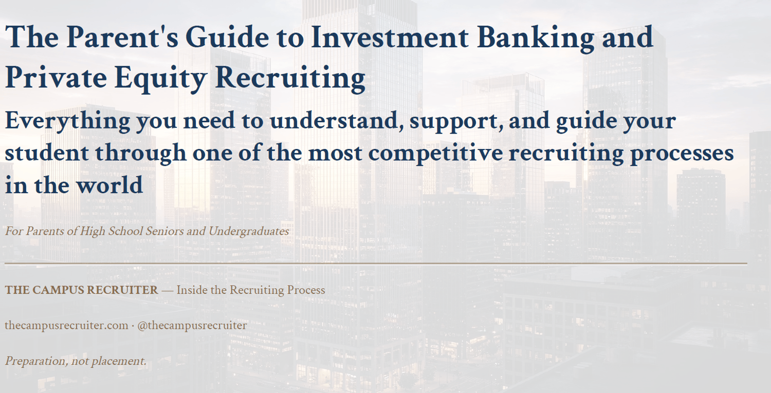 Your child earned a spot in the most competitive recruiting pool in the world. This toolkit gives you everything: the complete insider IB recruiting roadmap built by the recruiter who personally made the offer decisions, plus the exact re-recruiting strategy for if the internship doesn't go as planned. Because the parents who are truly prepared aren't just ready for the offer. They're ready for every outcome.