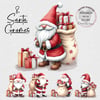 Christmas Santa gnomes. Sublimation, print, DTF etc, 8 high quality PNGs. Instant download. Christmas design. Christmas PNG. Designs are 300 dpi PNG, and created on an 10” by 10” artboard. Suitable for clothing, gift sacks etc but also resizable for smaller products.