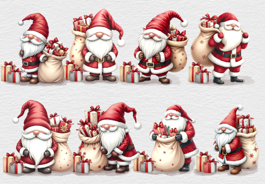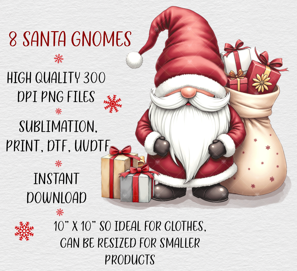 Christmas Santa gnomes. Sublimation, print, DTF etc, 8 high quality PNGs