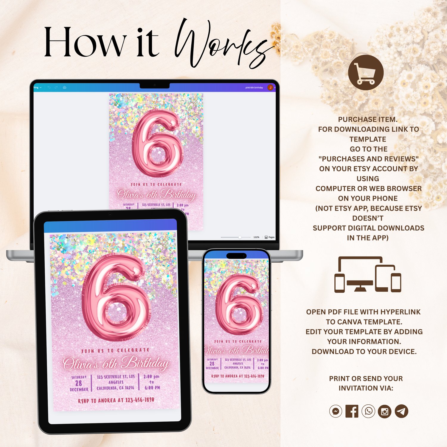 You can download the link upon purchase and we will send you the link to edit your invitation!