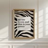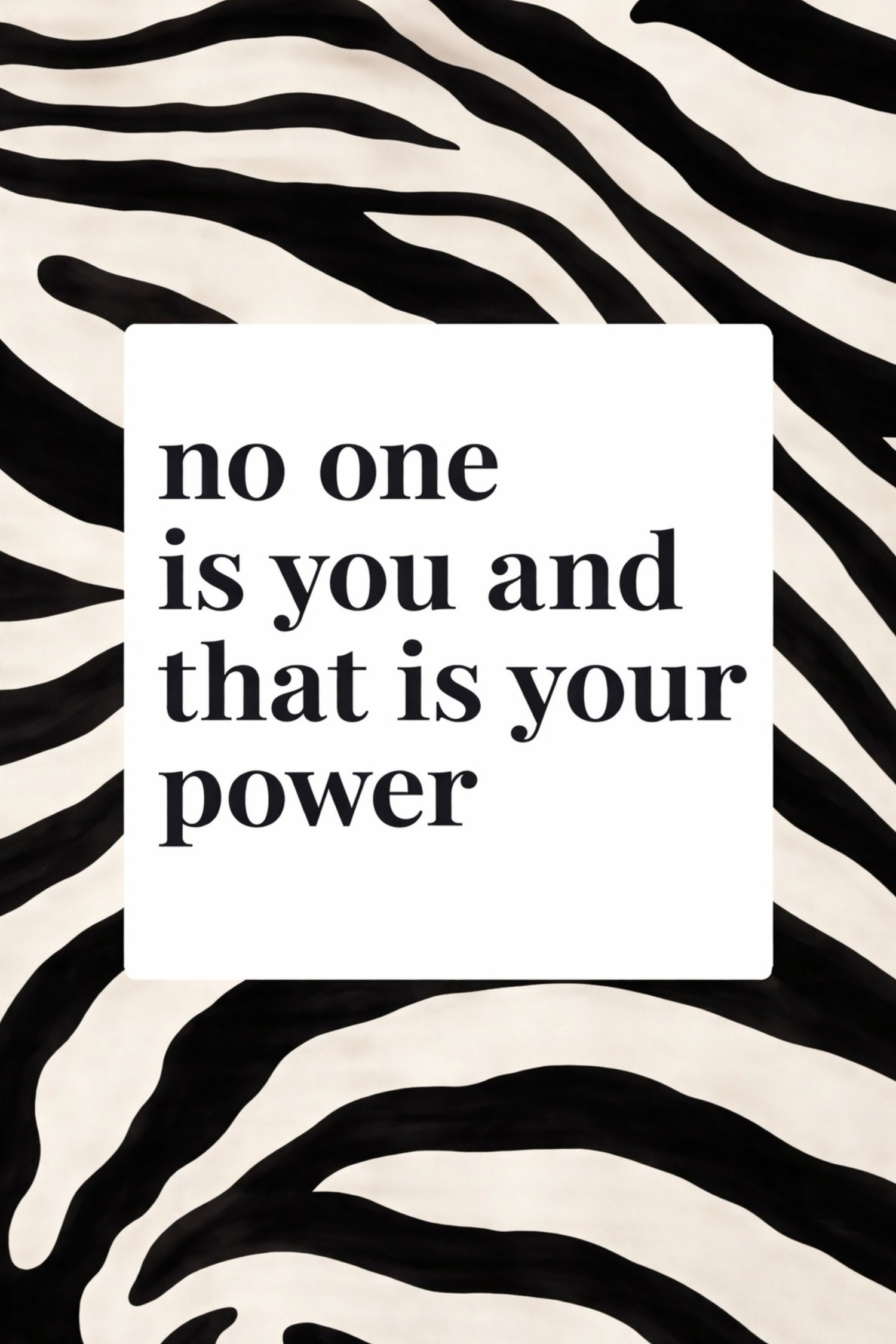 This bold “No one is you and that is your power” wall art is made to stand out. Featuring striking black typography set on a crisp white block against a modern zebra print background, this piece brings confidence, individuality, and fashion-forward energy into any space.