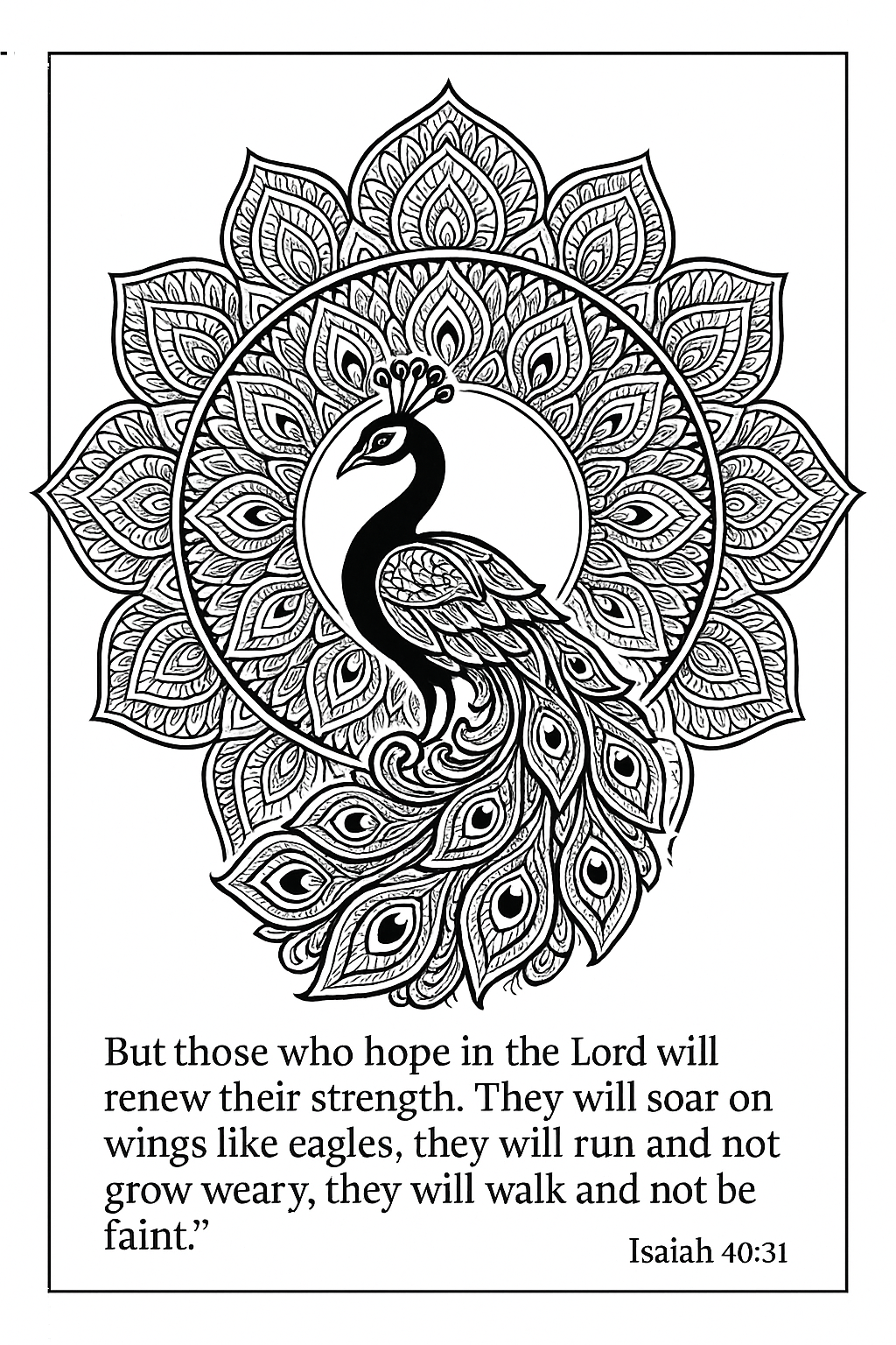 π¦ Renewed Strength β Peacock Mandala Scripture Poster (Isaiah 40:31)