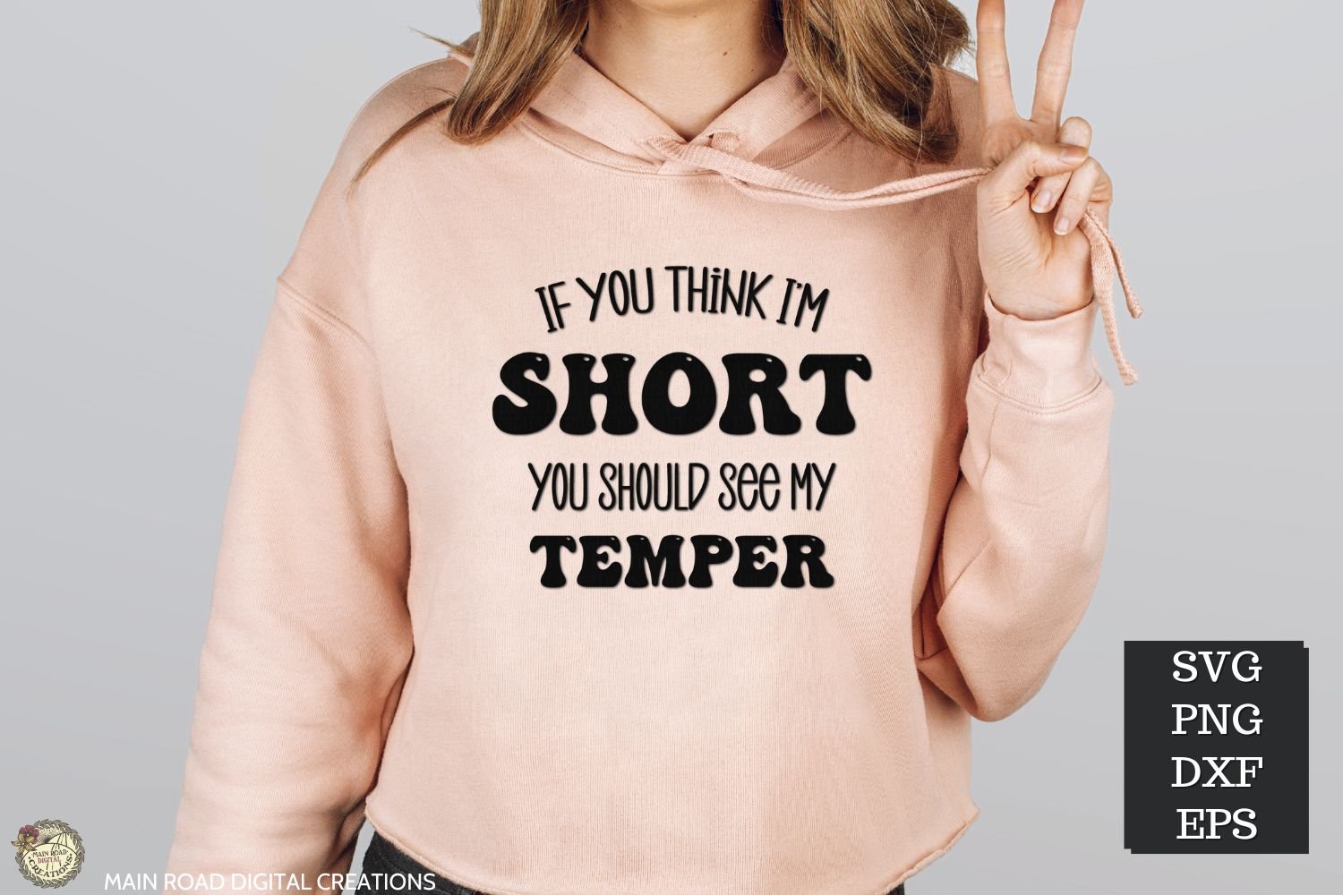 Add a little sass to your next craft project with this bold and funny "If You Think I'm Short You Should See My Temper" SVG. Featuring a playful mix of fonts that highlight the punchline, this design is perfect for a variety of products, including hoodies, tumblers, mugs, tote bags, and more. Great for crafting gifts or making something fun for yourself.