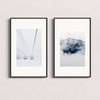 Set of 2 Prints wall art posters | Ski cable car print, foggy snowy mountain print | Nordic winter scenes wall decor Minimalist
