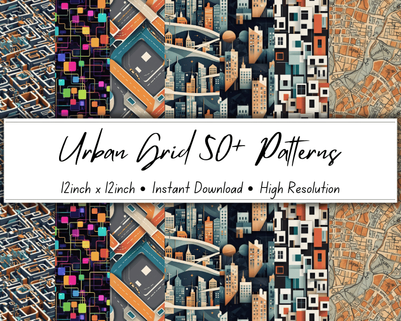 Urban Grid 50+ Patterns Collection | 12x12 Inches | High-Resolution Digital Printables | Instant Download