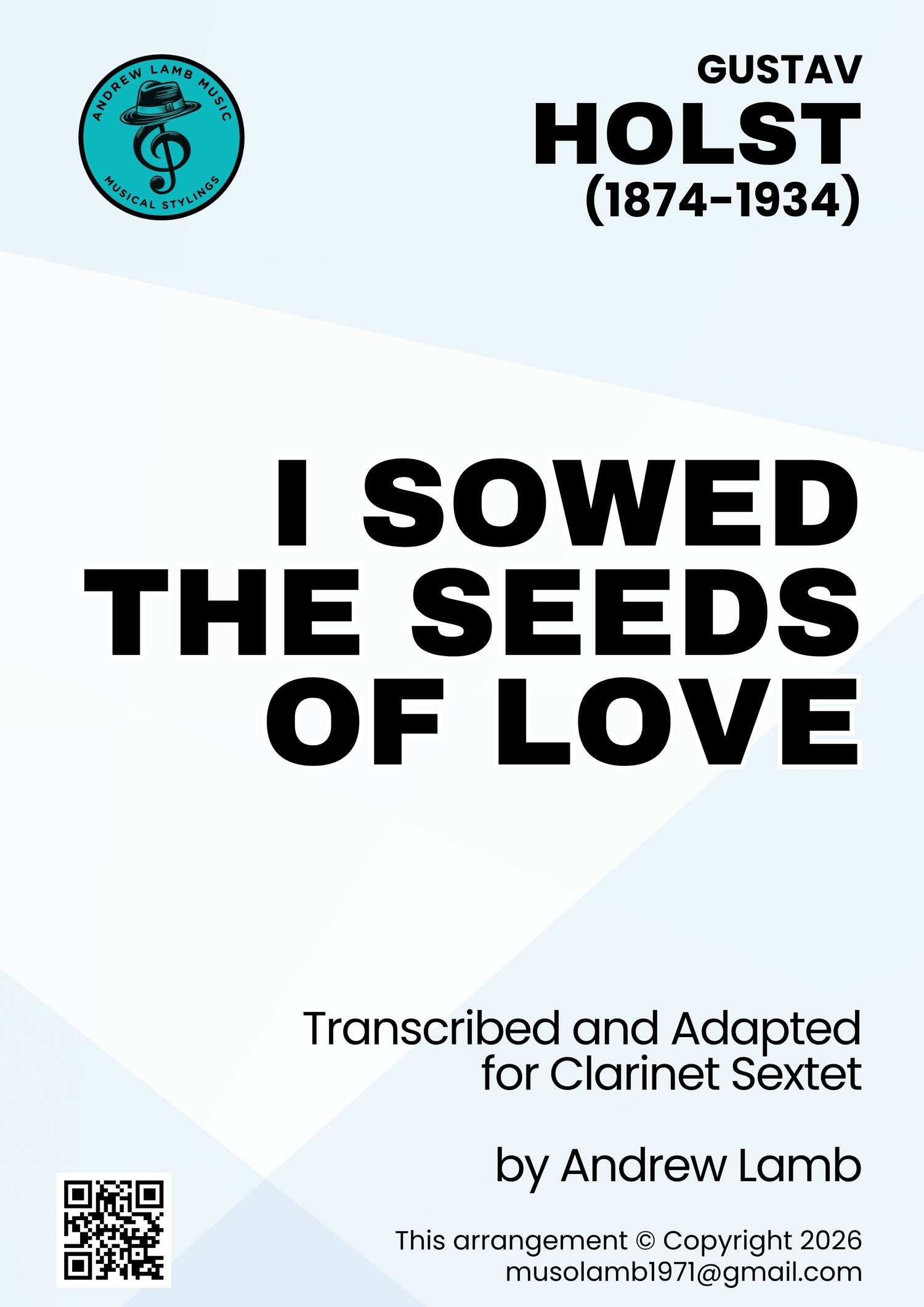 Add a touch of English folk charm to your next performance with this engaging clarinet sextet arrangement of Gustav Holst’s I Sowed the Seeds of Love. Best known for The Planets, Holst also celebrated the beauty of traditional English folksongs, and this lyrical setting captures both pastoral warmth and timeless storytelling.