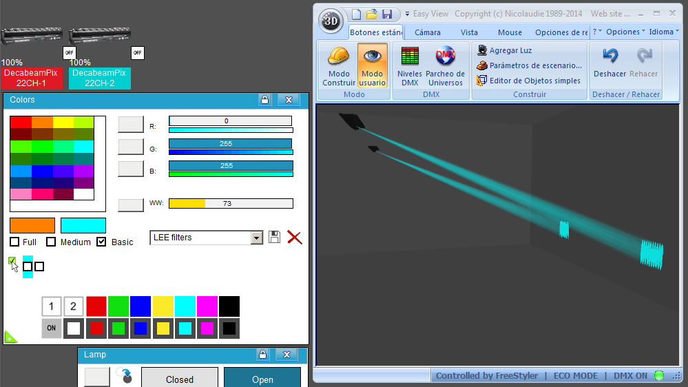 Esta Librería SSL2 está optimizada para trabajar con Magic 3d Easy View. Es decir para ver una representación 3D de las secuencias que estemos realizando con Freestyler, QLC+ o cualquier otro soft que se conecte con Magic 3d.
