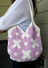 This is my version of the widely popular granny square bag and I call it XO Bag because the geometrical design of the squares creates the X’s and little O’s.