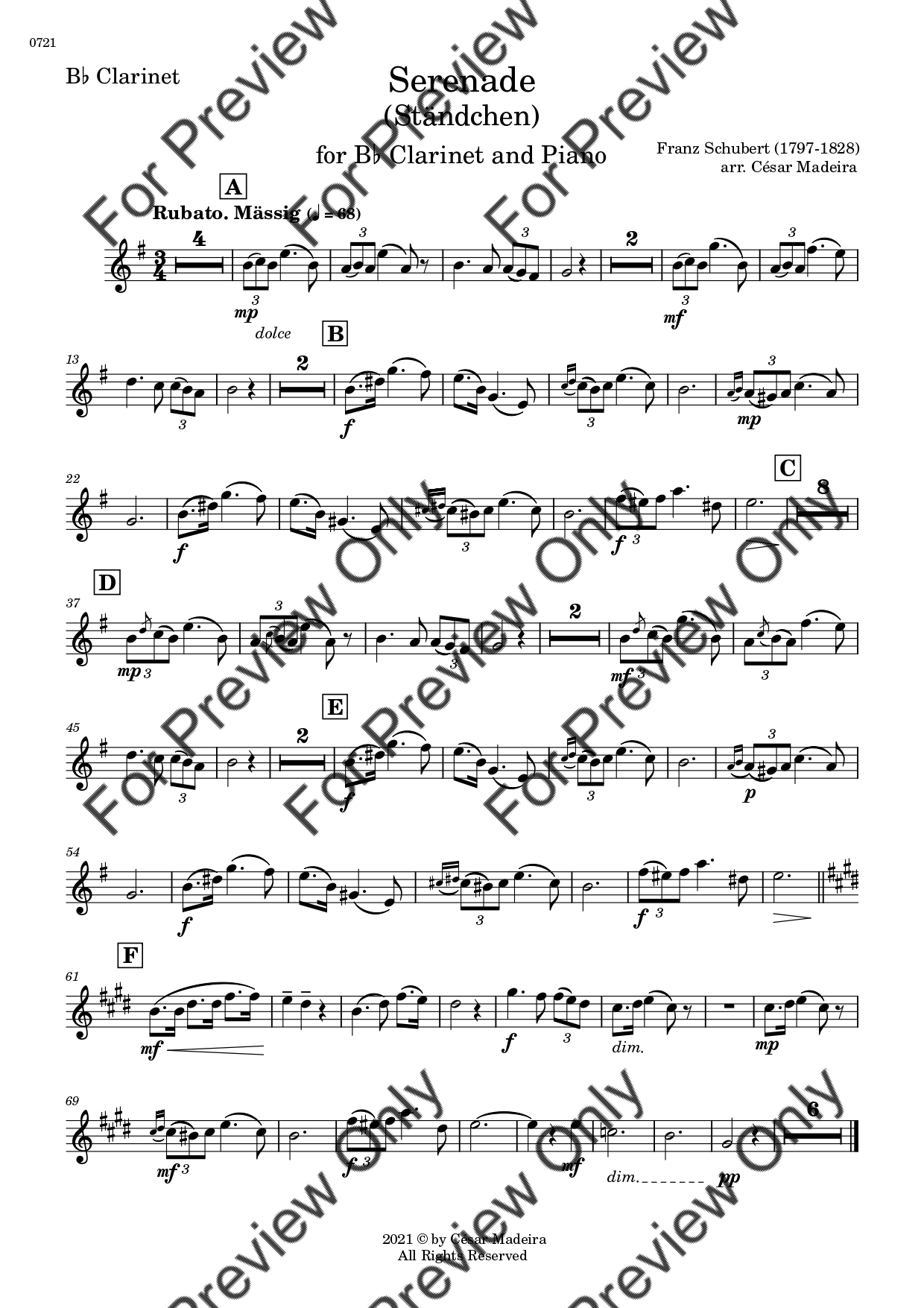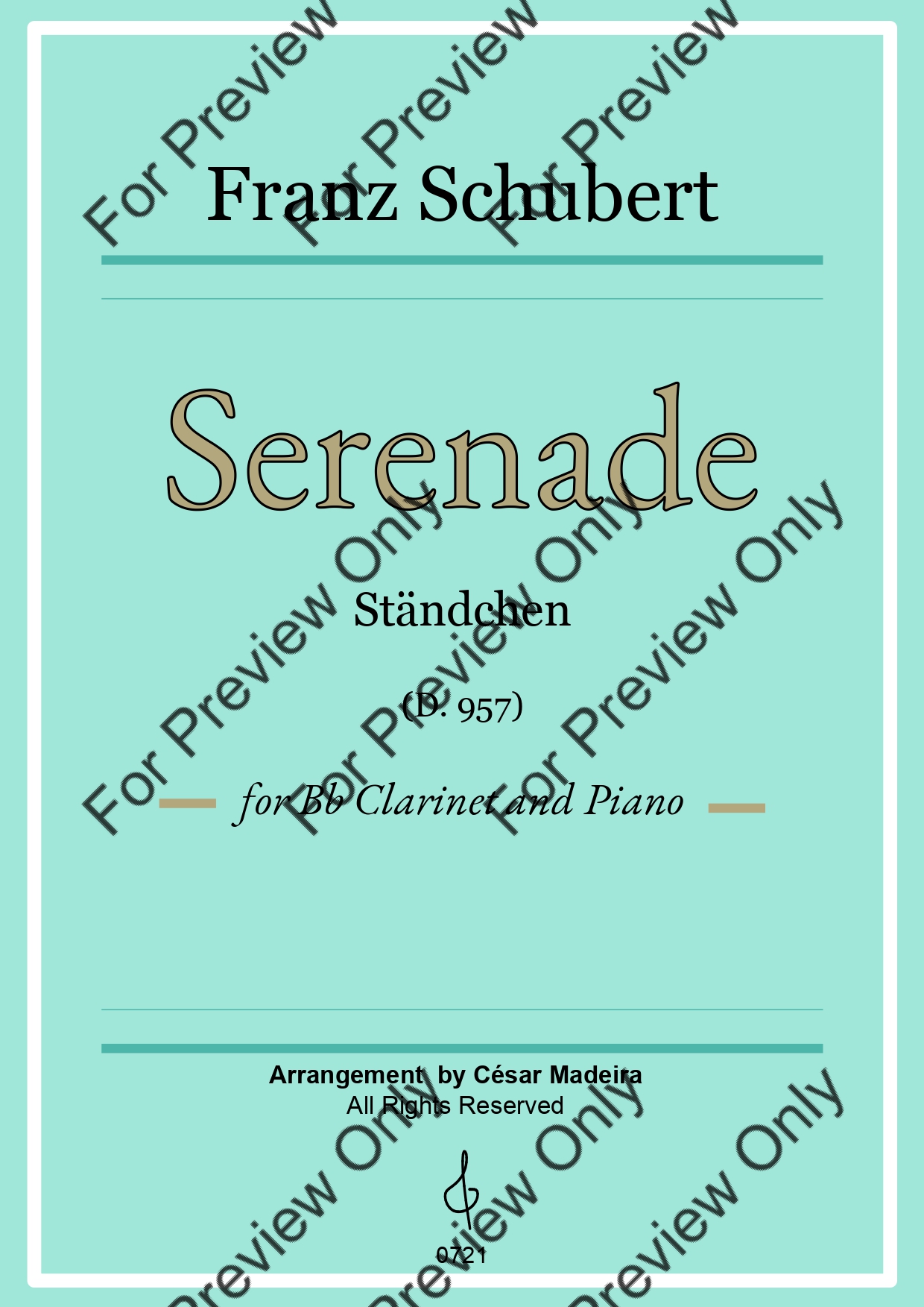 Serenade D.975 (Ständchen) by Franz Schubert. Arrangement for Bb Clarinet and Piano. With Full Score and Individual Parts. Have fun!