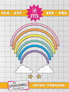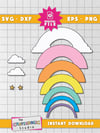 Layered and non-layered rainbow with clouds and stars in SVG, DXF, EPS and PNG.