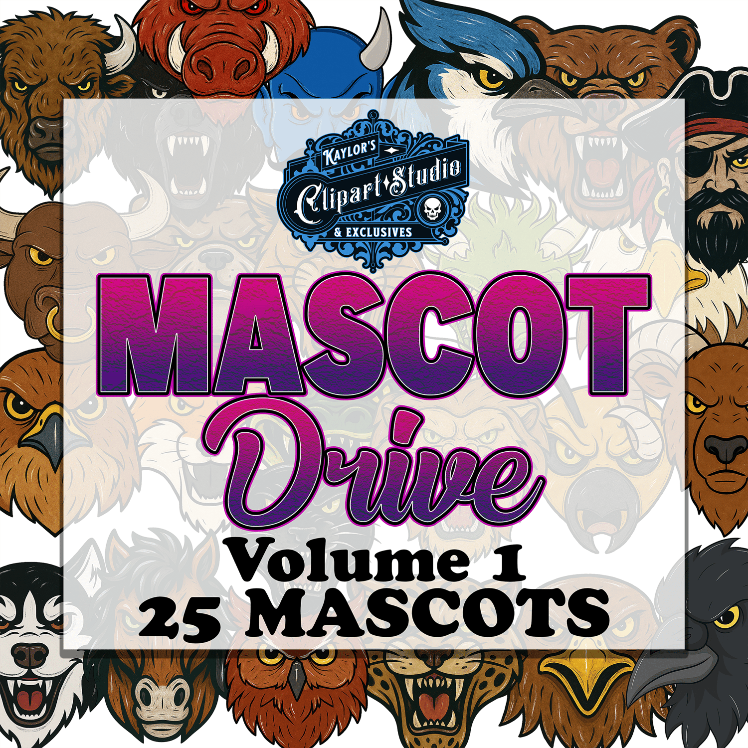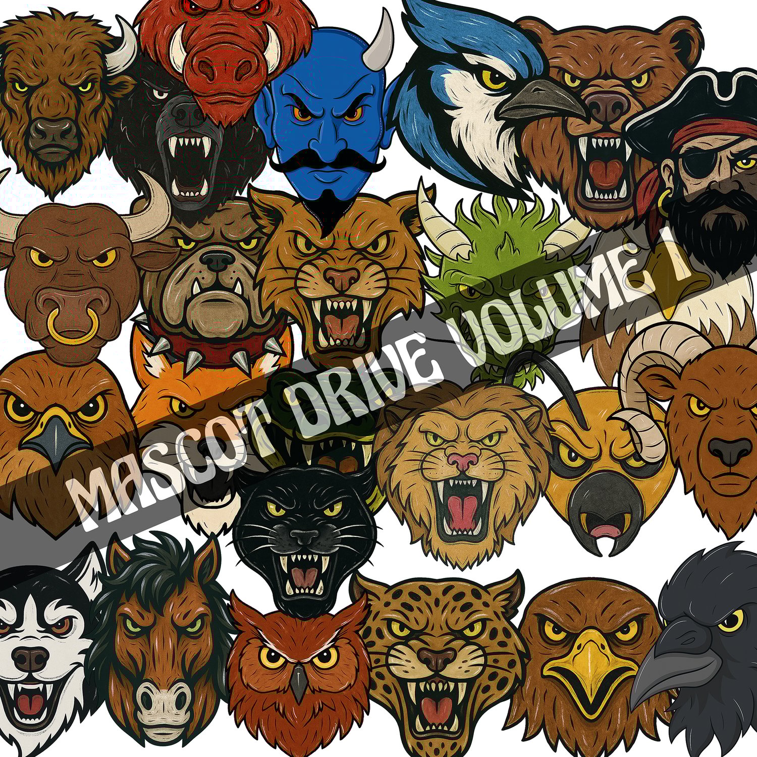 25 Piece Mascot Bundle Includes: BISON, BLACK BEAR,BLUE DEVIL,BROWN BEAR, BULL, BULLDOG