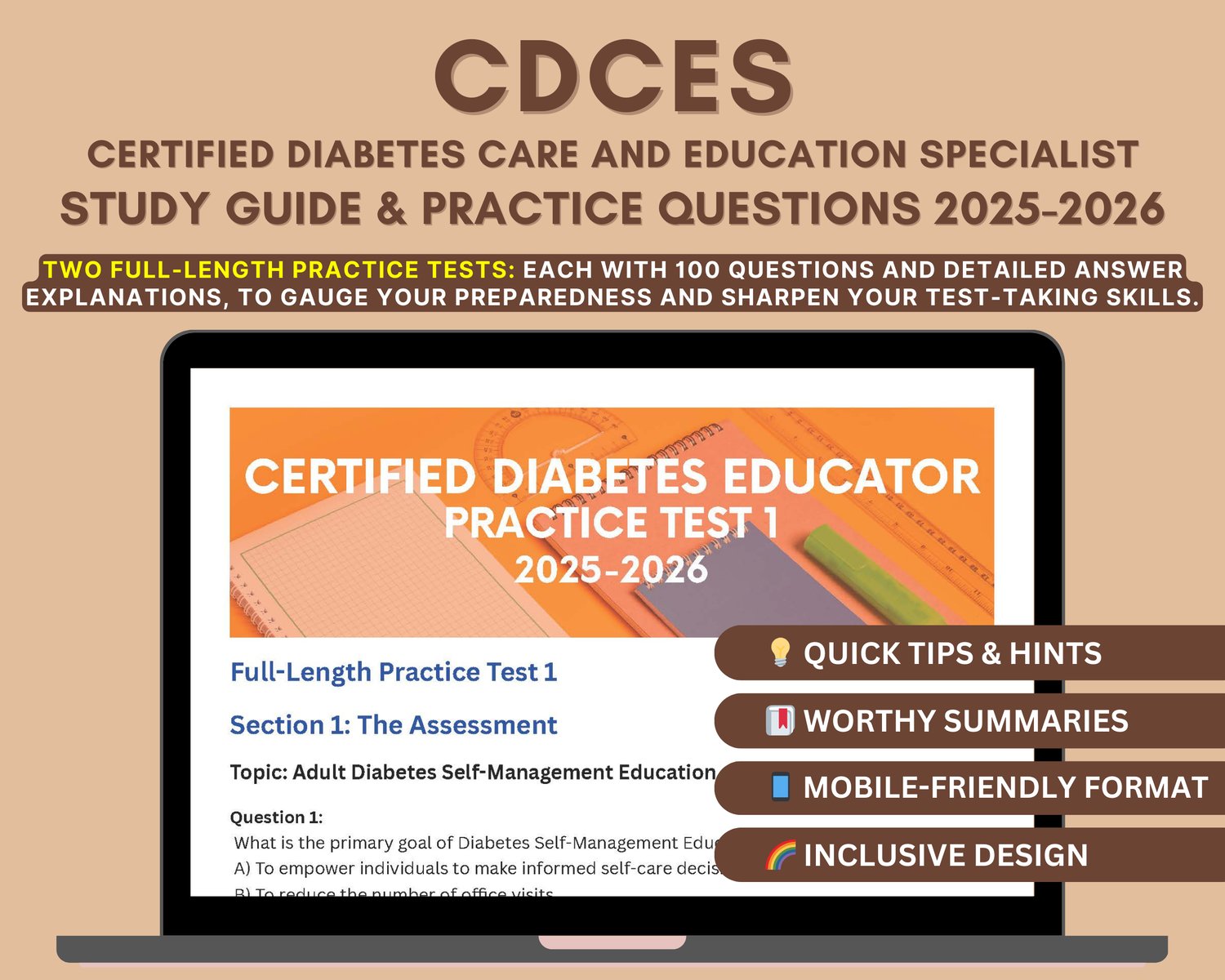Are you preparing for the Certified Diabetes Educator (CDCES) Exam 2025-2026? This comprehensive, downloadable study guide is your ultimate resource for acing the CDCES certification on the first attempt. Designed for registered nurses, dietitians, pharmacists, health educators, and other healthcare professionals, this guide provides in-depth content review, practice questions, and expert test-taking strategies to help you succeed.