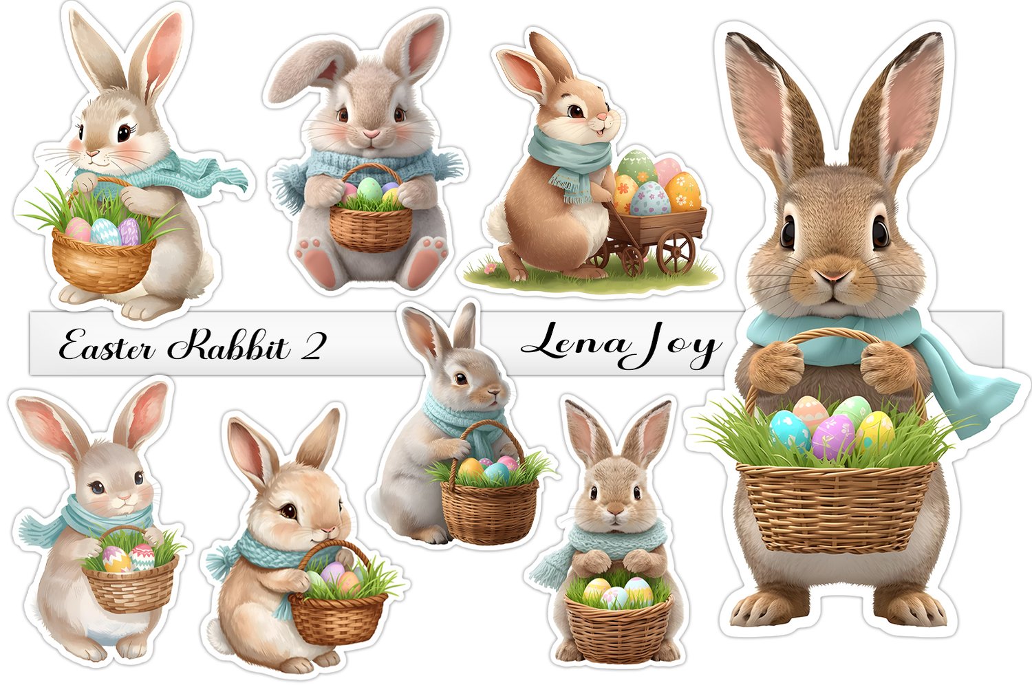 Keywords—Easter, Easter eggs, eggs, rabbit, bunny, basket, grass, bonnet, hat, colorful, holiday, scarf