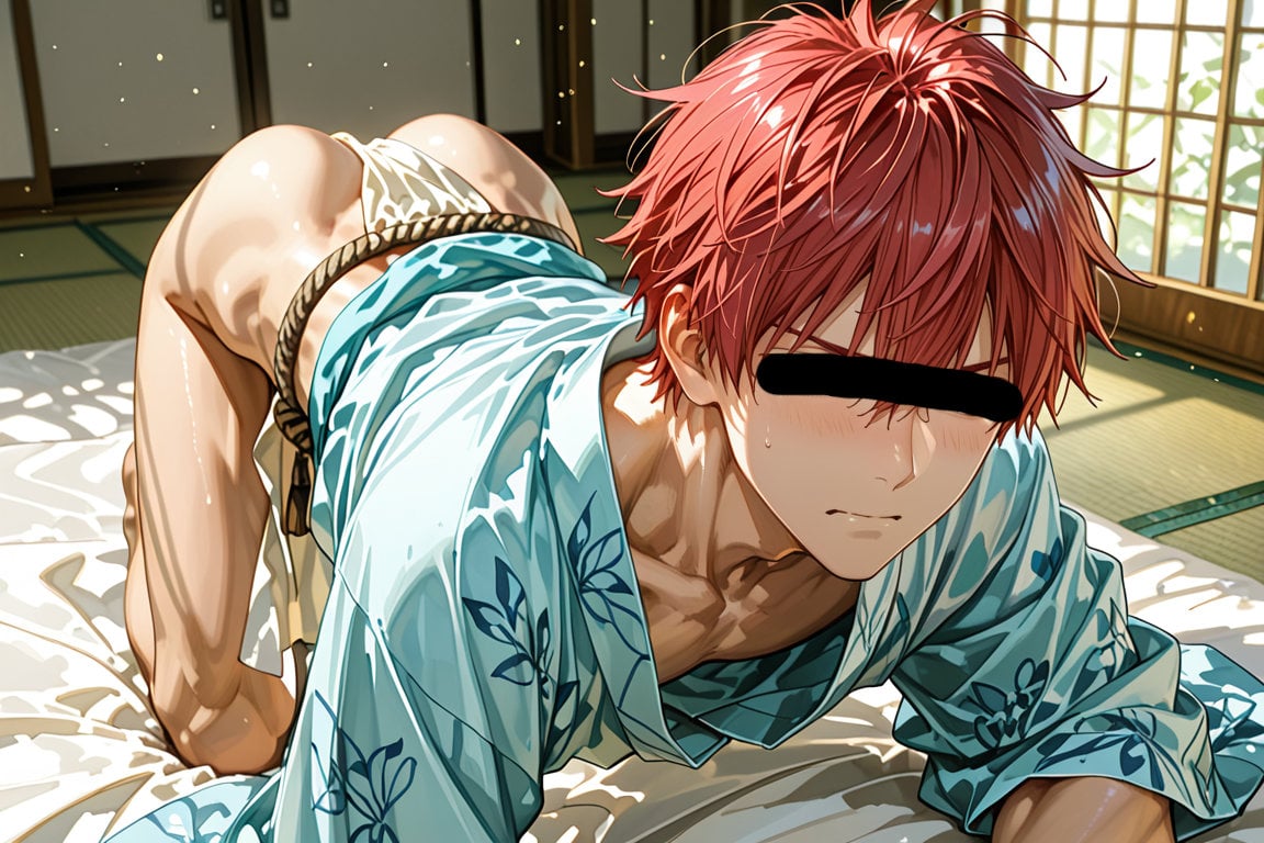 日本の正月をテーマに、着物を着用している男性を、キャラクターごとにお任せ作成しました。男らしいキャラクターの魅力を思い切って表現しました。