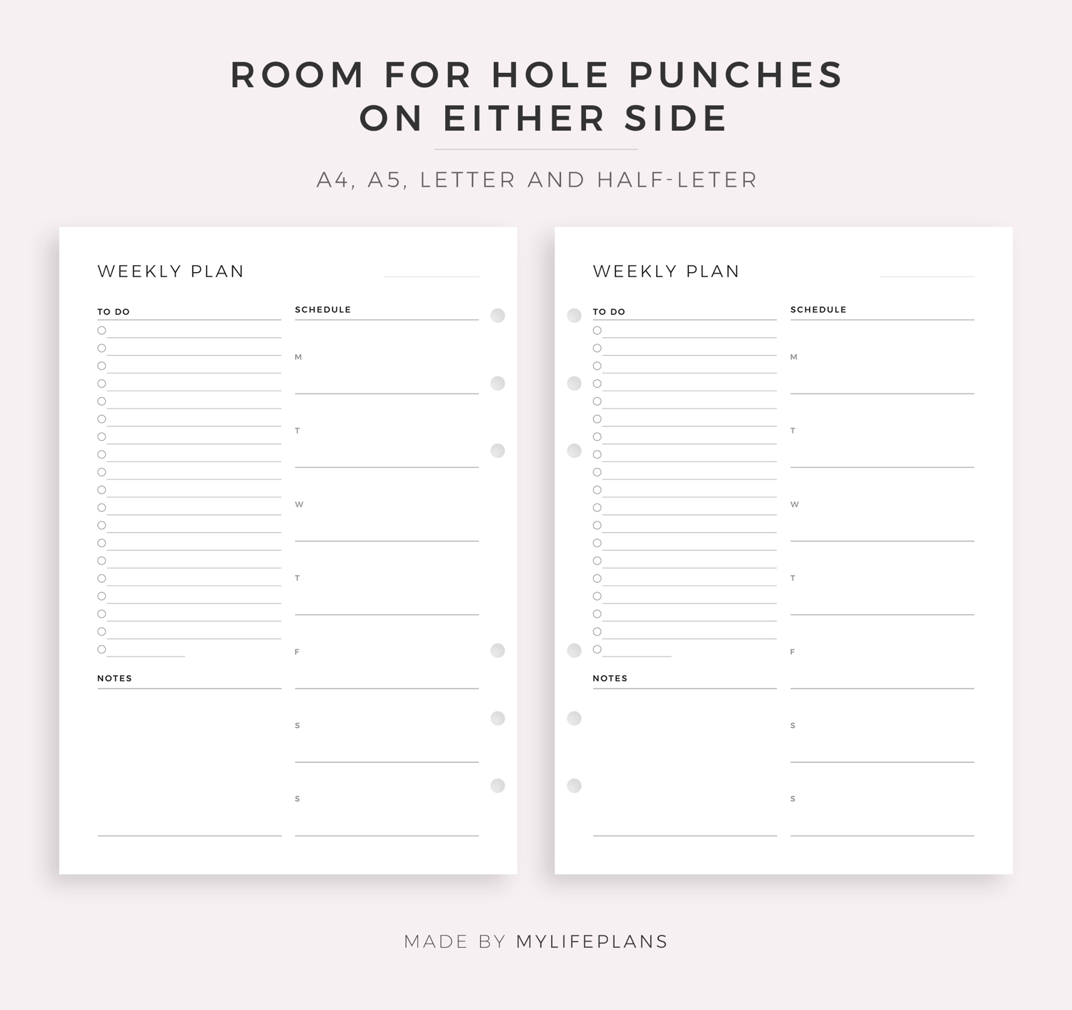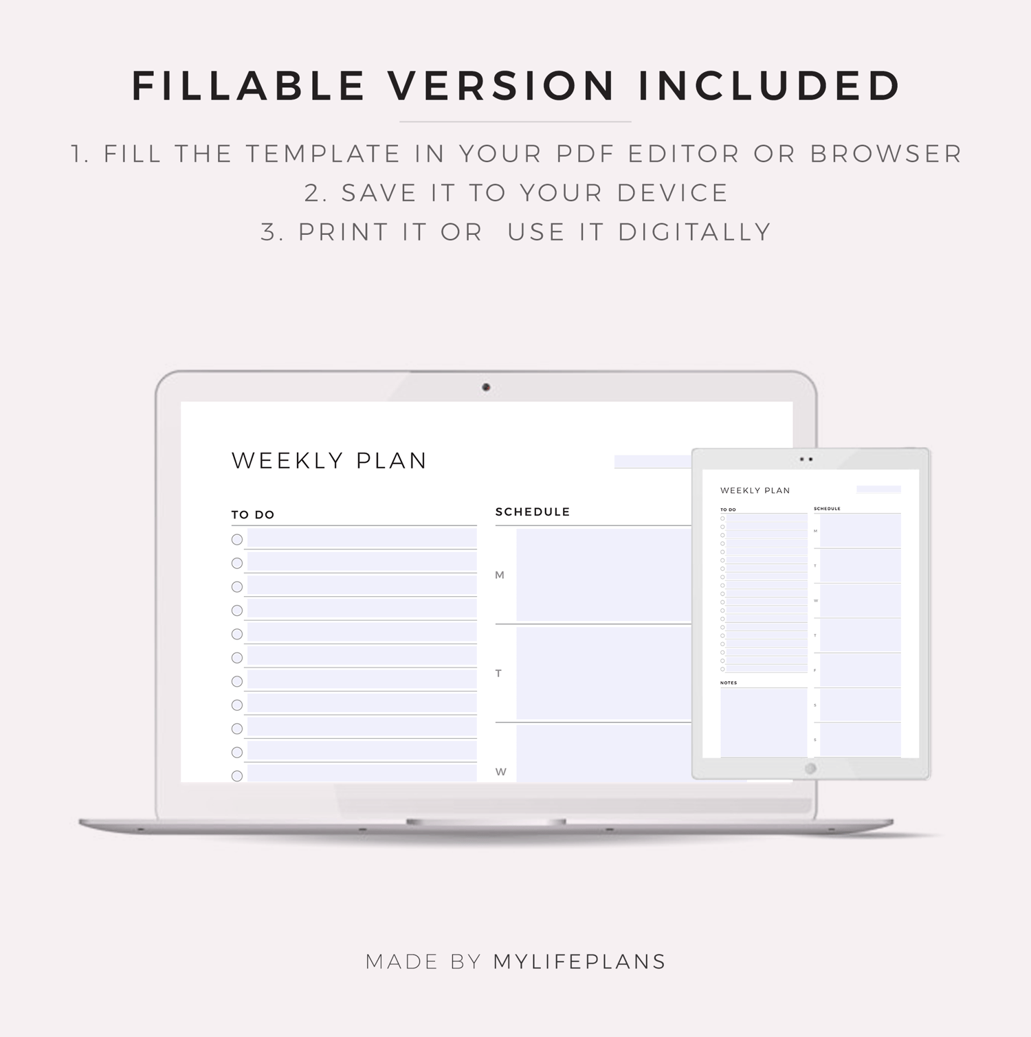 Simple Weekly Planner, Printable & Fillable PDF, A4/Letter Size