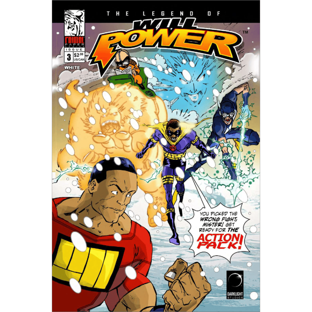 After defeating the mercenary Payday with the help of the mysterious "Time Guy". This same time traveler suggests that Will visit one of his father's other lesser-known labs in the Arctic. But to Will's surprise, it is being guarded by a team of empowered teens known as the "Action Pack". Part three of the six-part origin of The Legend of Will Power. The Powerverse is here!