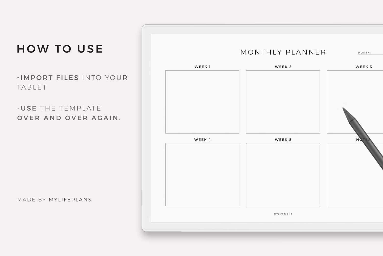Monthly Planner – A modern, minimalist template that works seamlessly with a wide range of e-ink devices. Simply download, import, and start using it right away.