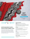Show off your stick work with this easy shawl—you can work on it at the rink, and when it’s finished it will keep you warm during the game. This hot shawl comes in three sizes and really is an enjoyable knit. Stockinette gets it going and variations of the Feather and Fan stitch pattern give it lots of interest. Knit it in your favourite team colours and wear it with pride. You knit, you score!