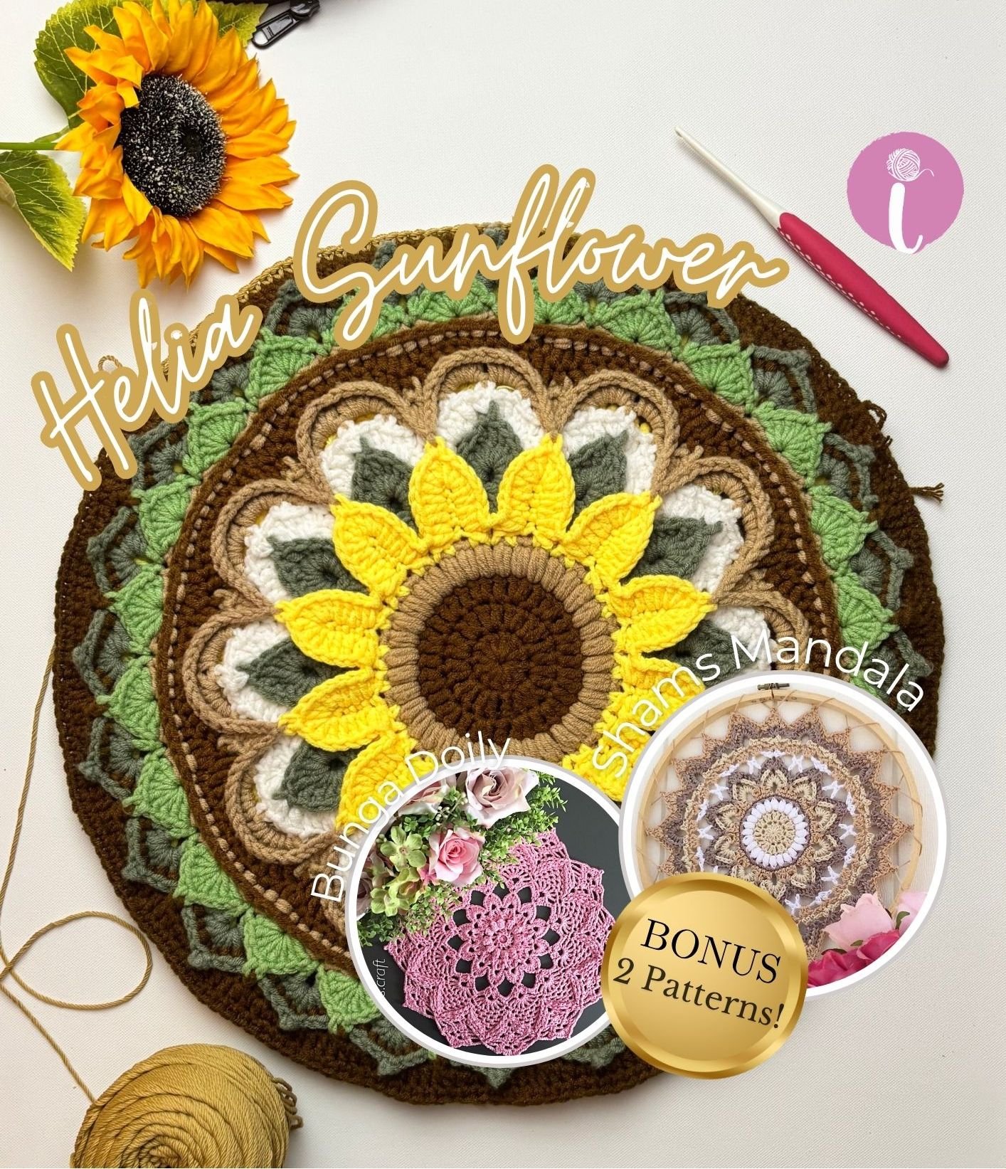 The Helia Sunflower pattern was previously known as the Sunny Sunflower Mandala, and was once featured in the UK crochet magazine Crochet Now Issue 66.