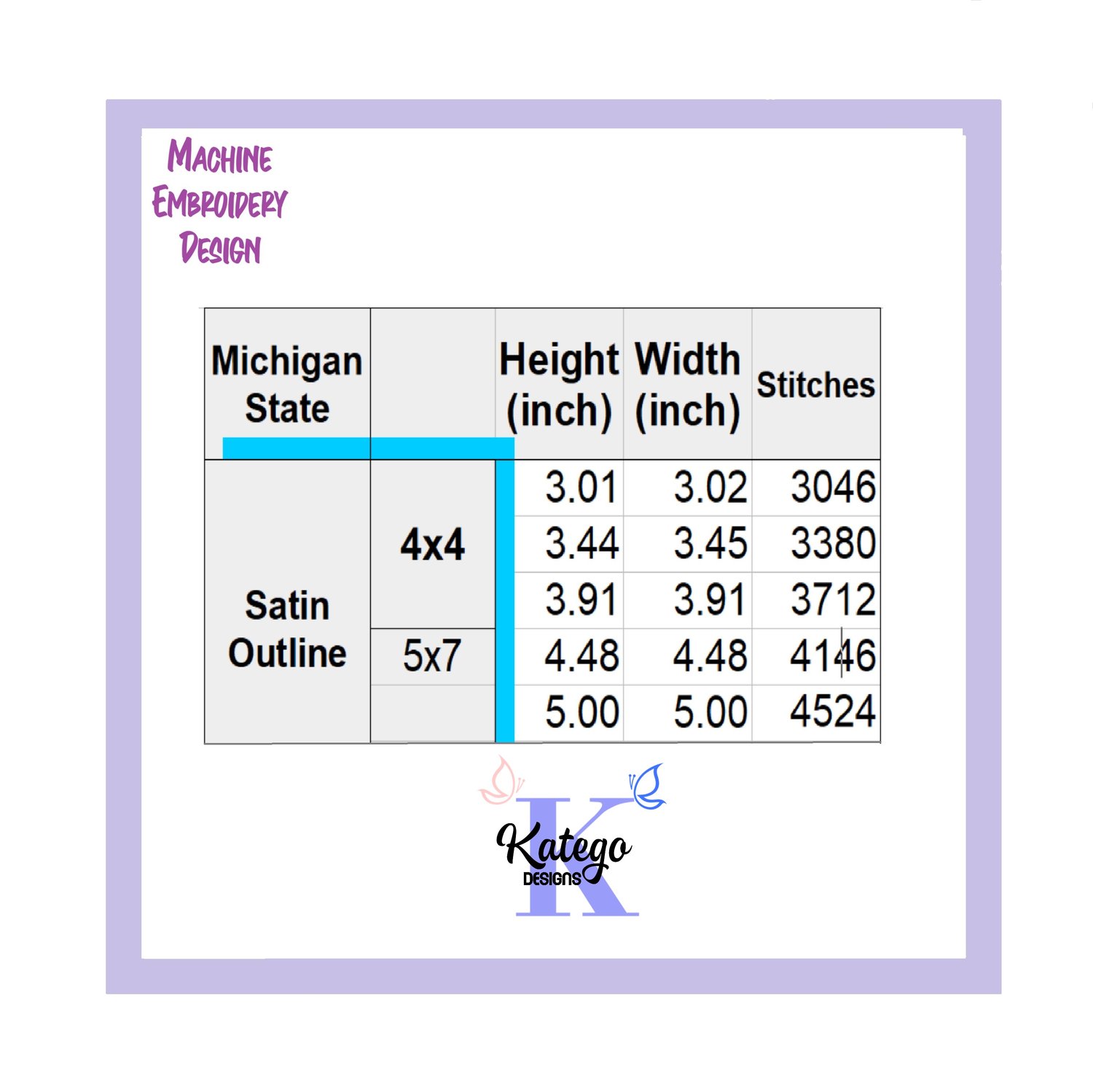 - Michigan Satin Outline: 4x4 and 5x7 Hoop different style.