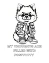 -1 PDF File - containing 81 pages (including cover) consisting of 28 daily POM Cartoon coloring images with daily affirmations, 56 prompted journal pages (2 per day x 28)
