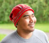 We used Ancient Arts Touchdown yarn; 557 yds / 510 m per 5oz / 150g skein; 80% superwash wool, 20% nylon. Touchdown has been dyed to produce a colour sequencing that works well with the stitch pattern. Yarn substitutions may not give the desired effect. The generous (150g) skein means you can make more than one hat, or a hat and a pair of fingerless gloves!