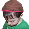 When my twins turned three, they needed kippot (kippahs, yarmulkes, head coverings) to wear at preschool. I wanted to design something that would stay put on their heads without clips, was easily washable, and fun to wear.