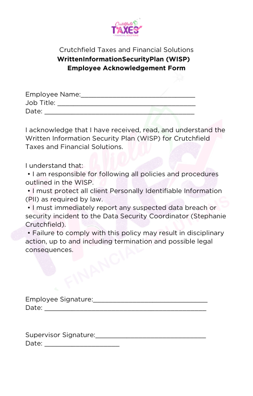 A professional, customizable form template for documenting employee policy agreements, training confirmations, and workplace acknowledgements. Simple, organized, and ready to use.