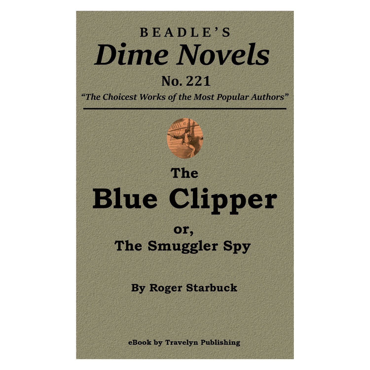 Published originally in 1871, The Blue Clipper; or, The Smuggler Spy is No. 221 of the Beadle’s Dime Novels series. This one is a naval story taking place in the mid 19th century during a period of general peace in the young United States that lasted from the War of 1812 until the Civil War, a period when the nation’s navy was predominately involved in enforcing import laws, stopping illegal smuggling, and battling pirates. There is a romantic subplot and the author does a good job of keeping the reader in doubt about which of the various protagonists they should be rooting for, romantically and otherwise, until the very end of the story.