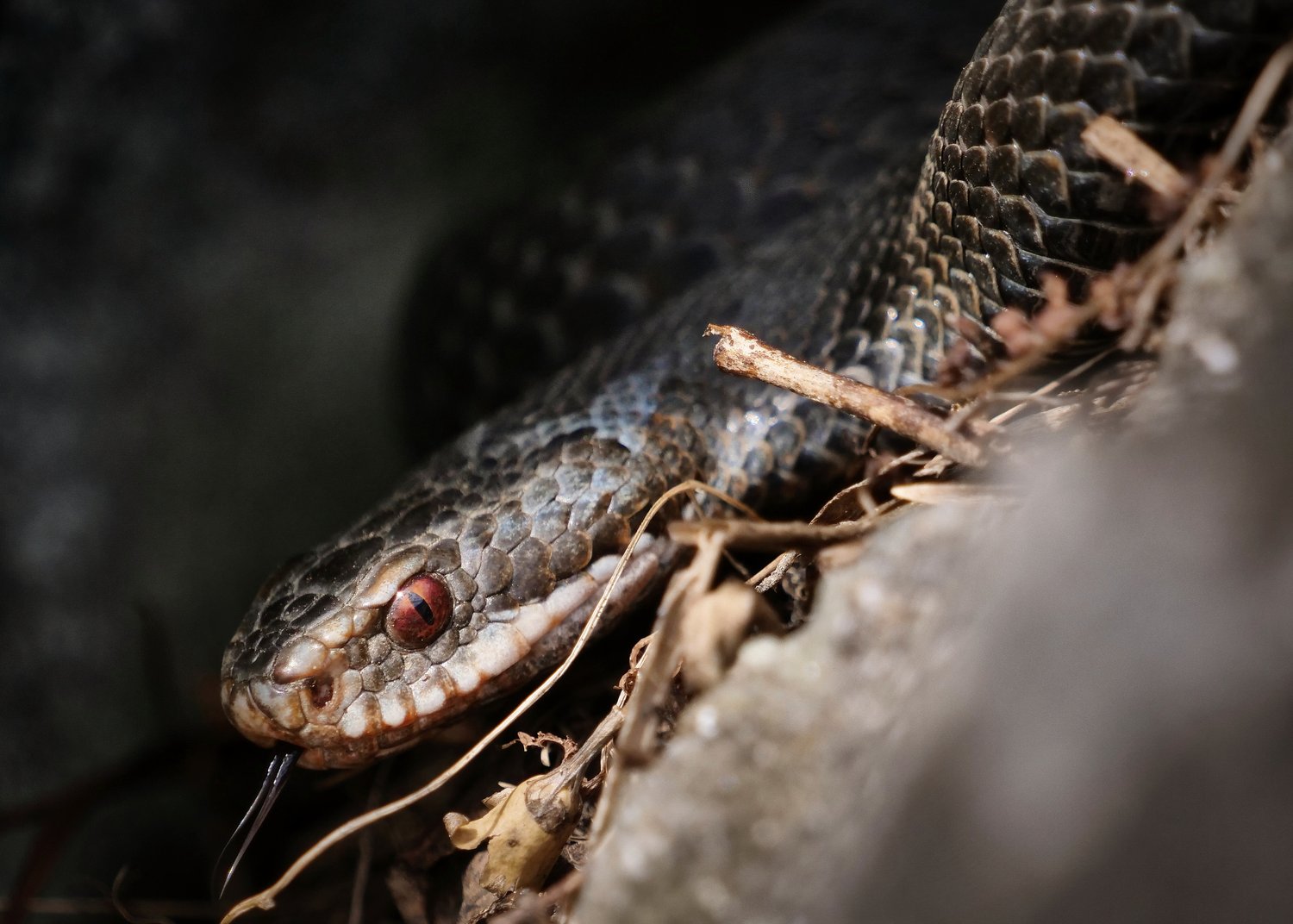 The Black Viper (Vipera berus) sniffs the air with his tongue.
