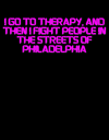 We go to therapy, and then we fight people in the streets. Join the Club.