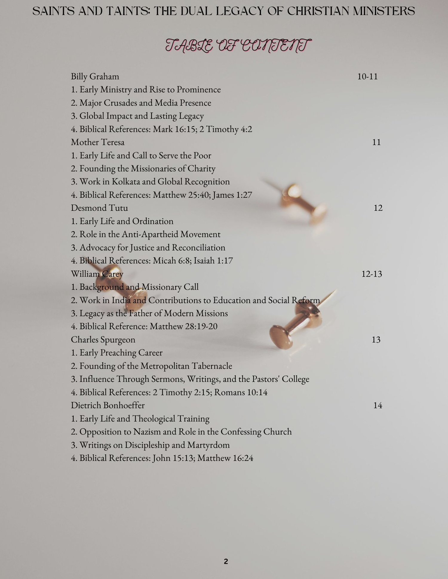 · In-Depth Profiles: Explore the inspiring stories of ministers like St. Augustine, Martin Luther, and Mother Teresa, Billy Graham, whose devotion and leadership have transformed countless lives and advanced theological understanding.