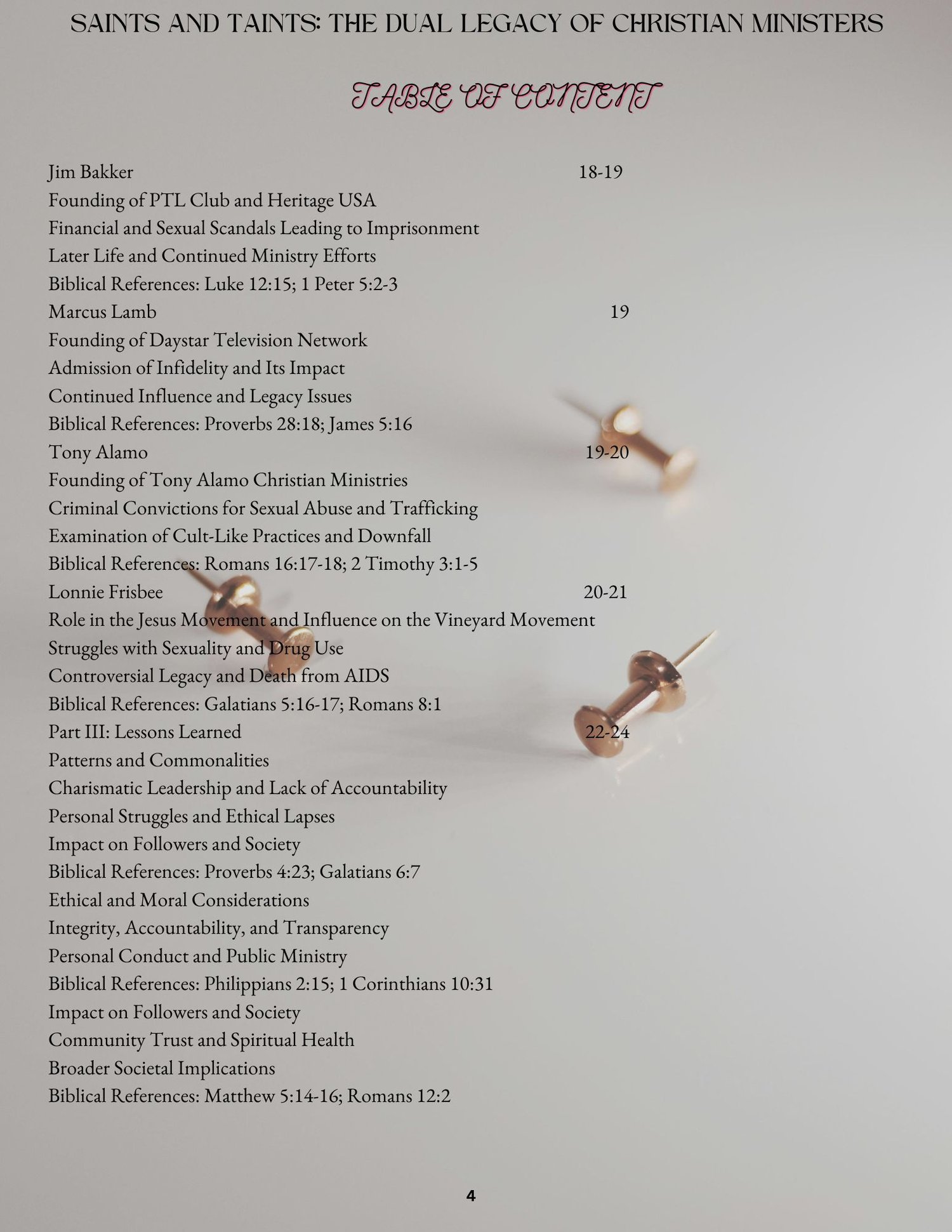 · Lessons Learned: Analyze the patterns and commonalities in the lives of these ministers, and draw practical lessons on integrity, accountability, and the impact of personal conduct on public ministry.