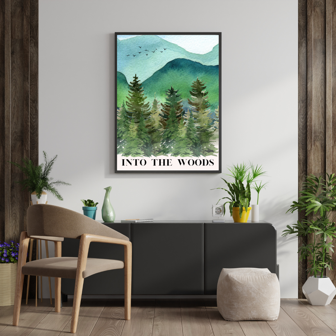 As you gaze upon the scene, a sense of wonder and anticipation fills the air, as if the very essence of the woods is alive with the promise of adventure and discovery. From babbling brooks to whispering breezes, every element of the poster transports you deeper into the heart of nature's embrace.