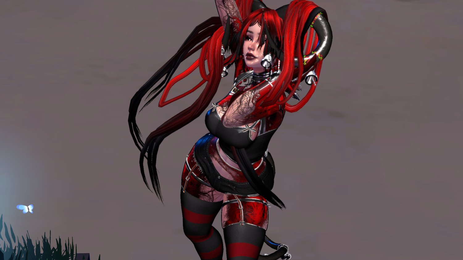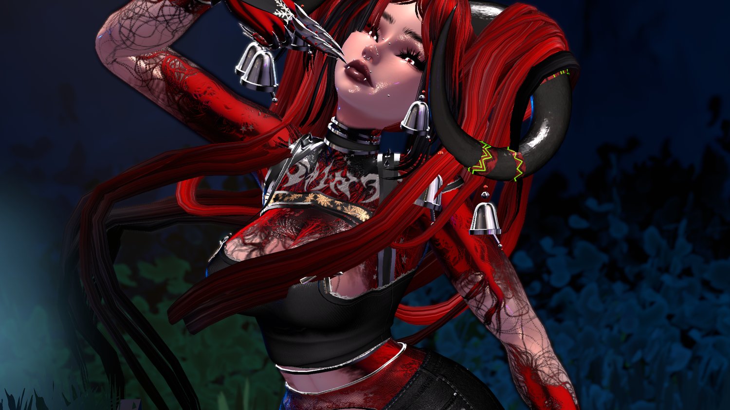 Base: Zinpia • Head, Outfit 1 & 2: Nessy • Horns: DoctorMystic • Hooves: novapie • Tail: Nightshvde • Tattoo 1: kijiio • Tattoo 2: uwublossem • Base & Makeup Texture: Jvliette • Hair 1: V3N1X • Hair 2: Vampi • Hair 3: Saikura • Hair Textures: cicieaaavr • Earrings: Skulli • Sweater Dress: Sezzy • Nails: Zenifyy • Claws: Vinuzhka • Shorts: Yuutsu • Tank Top: Enkeli • Eyes: therealthiccwitch • Candy Cane/Sword: Makarov • Custom Sword Particle: MedicE • Better Gestures: Kiriecho • Wholesome setup: Wholesome • Matcap: Shugan • Gogo Loco: Franda • Everything else by me