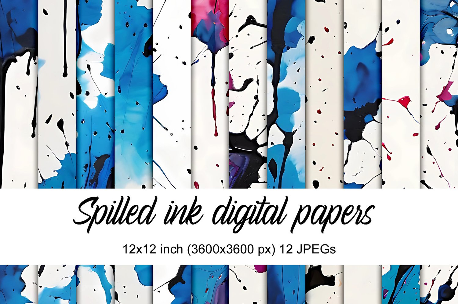 Spilled ink patterns is collection of 12 digital images, in size of digital paper – 3600 x 3600 pixels (or 12×12 inches).
