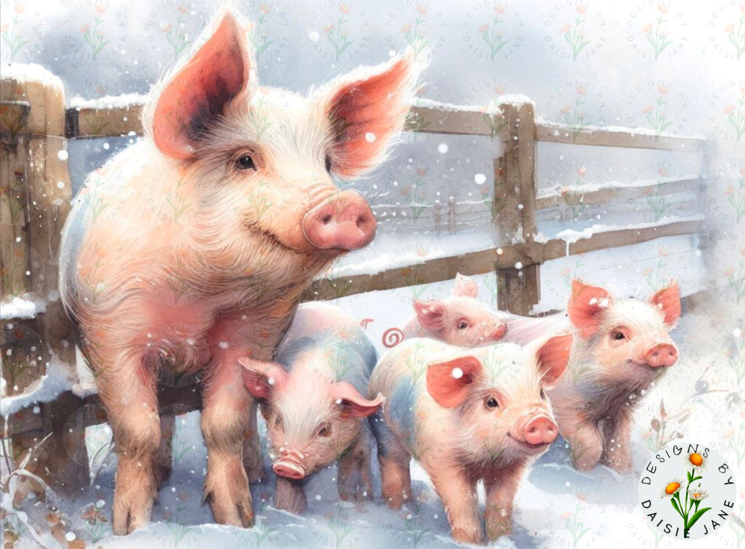 Piggies In The Snow *CHOPPING BOARD SIZE*