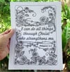 Unwind and reflect on the uplifting promises of the Bible with this printable set of 6 coloring pages. Each page combines beloved Bible verses with beautiful illustrations, including: