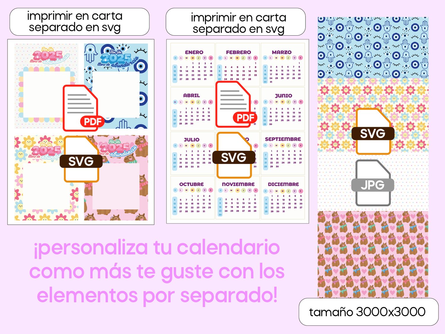 • 12 meses del año 2025 por separado en SVG