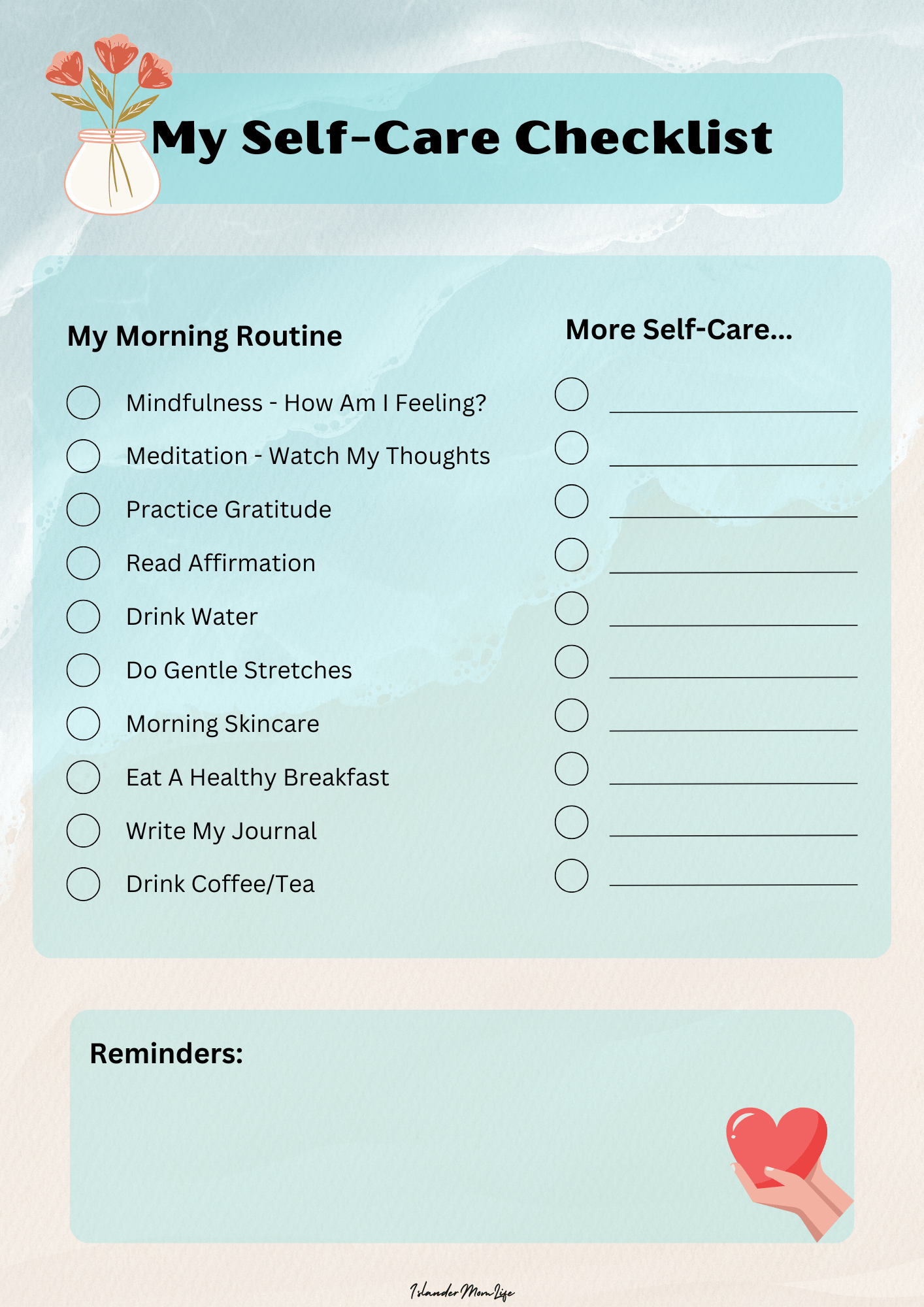 This one-page self-care checklist is a simple reminder to pause and care for yourself even on busy days.