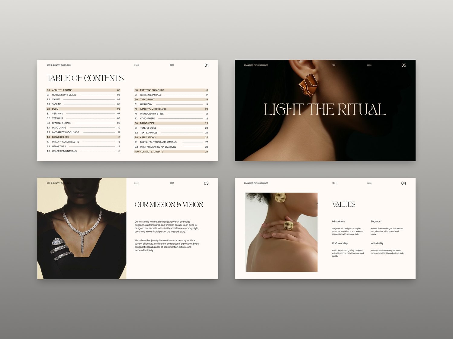 This fully editable Canva template gives you everything you need to build a premium jewelry brand with a clear and consistent aesthetic. Created for modern, elegant brands, it helps you define your visual direction, maintain consistency, and present your brand with confidence across all platforms.