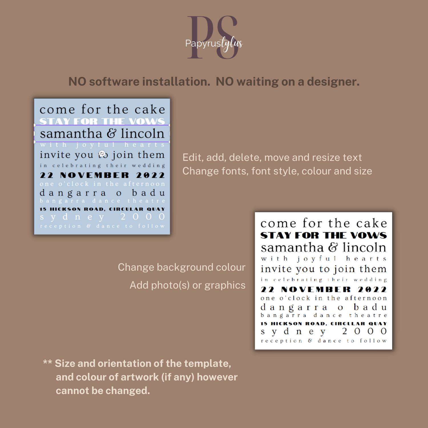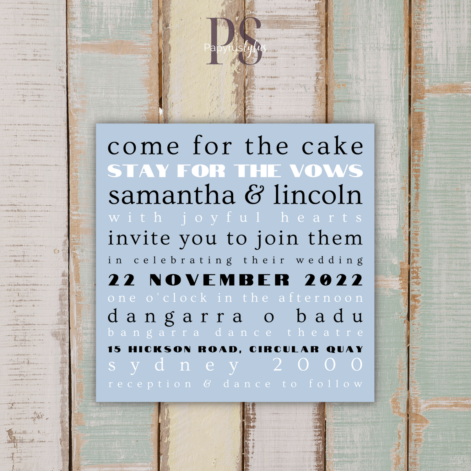 SAM Typographic Wedding Invitation Template | LIGHT STEEL BLUE