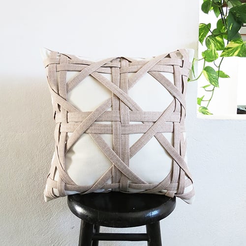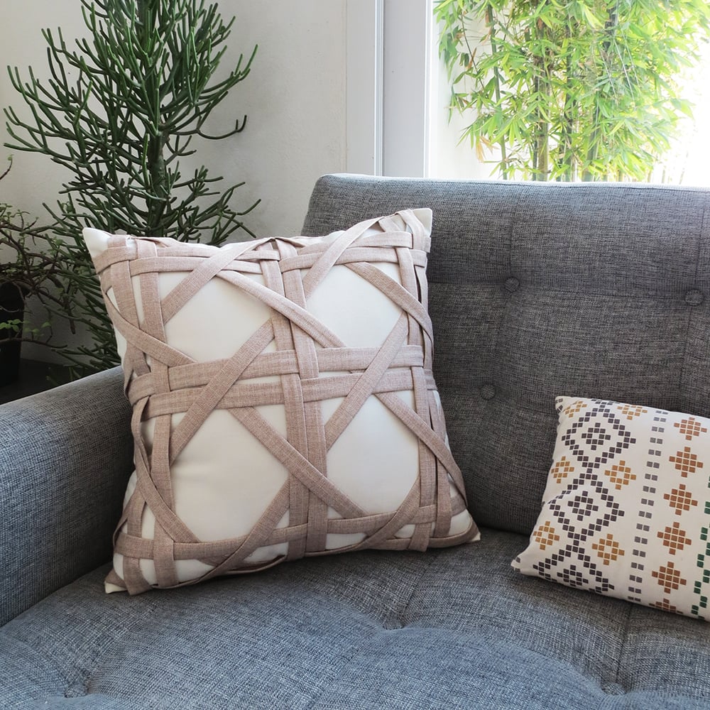 Add a touch of style to your home by sewing a woven cushion cover. This pillow cover is inspired by traditional cane weaving work. Caning is the craft of applying rattan cane or rattan peel to a piece of furniture such as the backs or the seats of chairs.