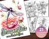 21 Dragonflies Coloring Book, Adults kids Instant Download -Grayscale Coloring Book - Printable PDF, Dragonfly coloring, Flowers, Beauty
