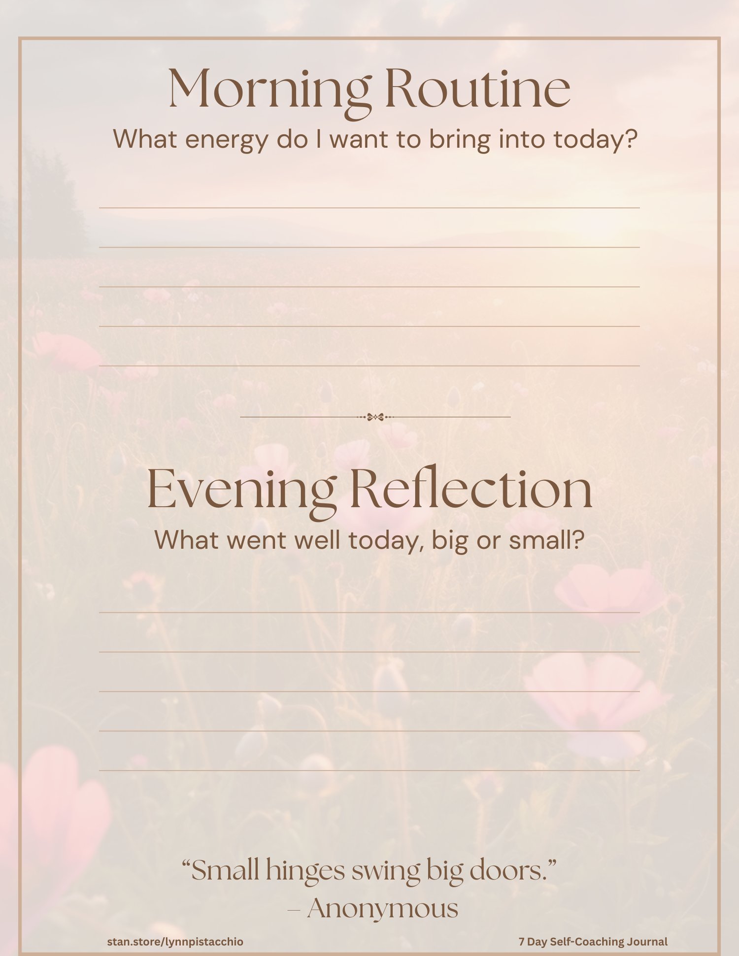 Beautifully designed, The 7 Day Self-Coaching Journal is a guided printable designed to foster daily reflection, personal growth, and intentional living within a single week.
