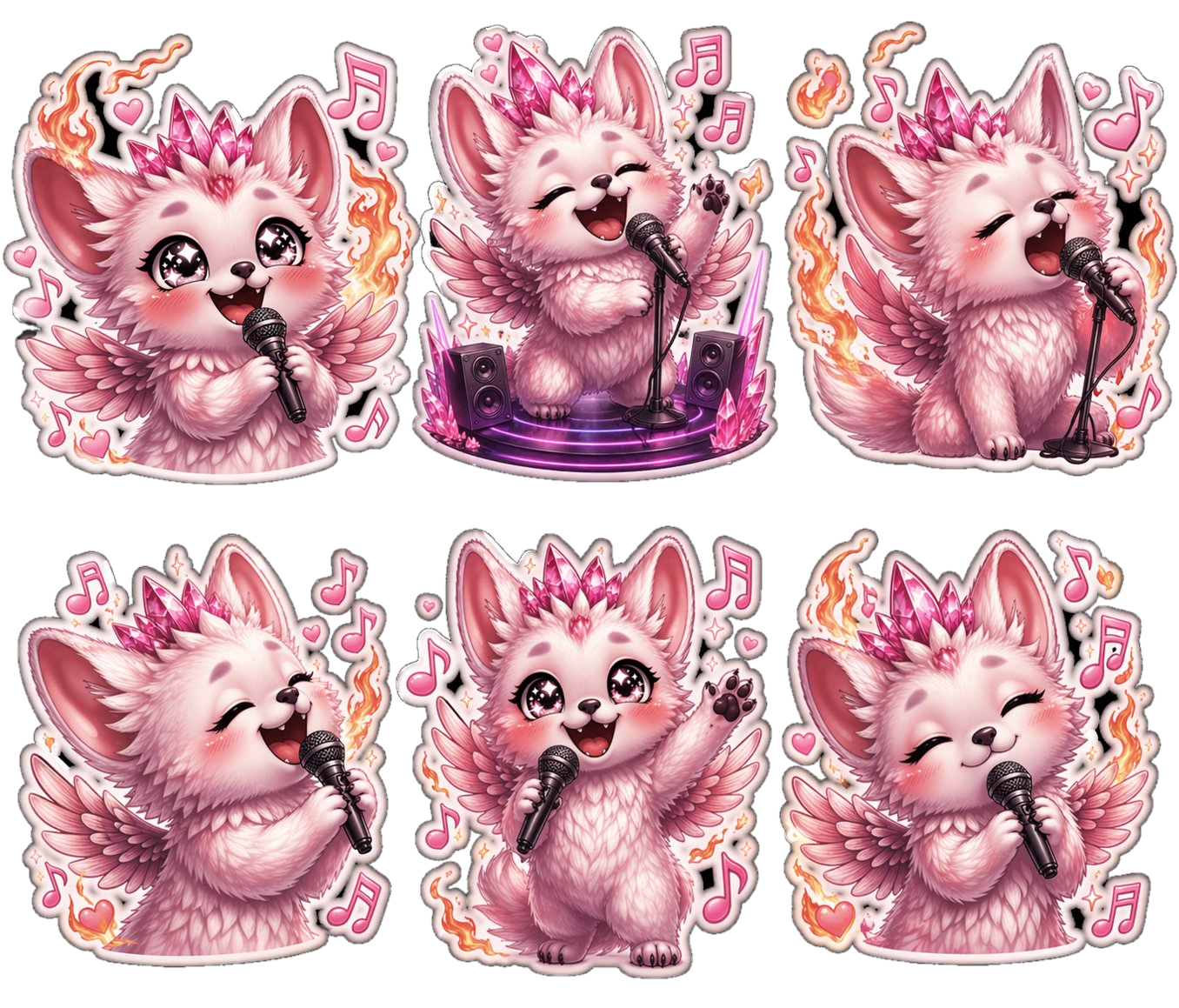 With sparkling eyes, fluffy pastel fur, and magical crystal details, these stickers bring a dreamy kawaii vibe to any project. Surrounded by music notes, hearts, and glowing accents, Singer Trico is ready to steal the spotlight!