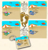 Every detail is hand painted by me. 4 beach scenes; male and female accessories, one plain and one with "we'd follow you everywhere" written in the sand, for each female and male version.