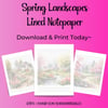 Spring Landscapes Lined Stationery | Spring Countryside Lined Notepaper | Spring Writing Paper | Lined Penpal Paper