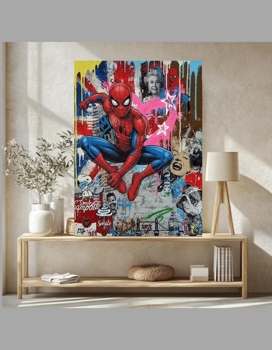 Spider-Man Pop Art Graffiti Print - Urban Street Art Superhero Poster | Marvel Comic Wall Decor PNG Download